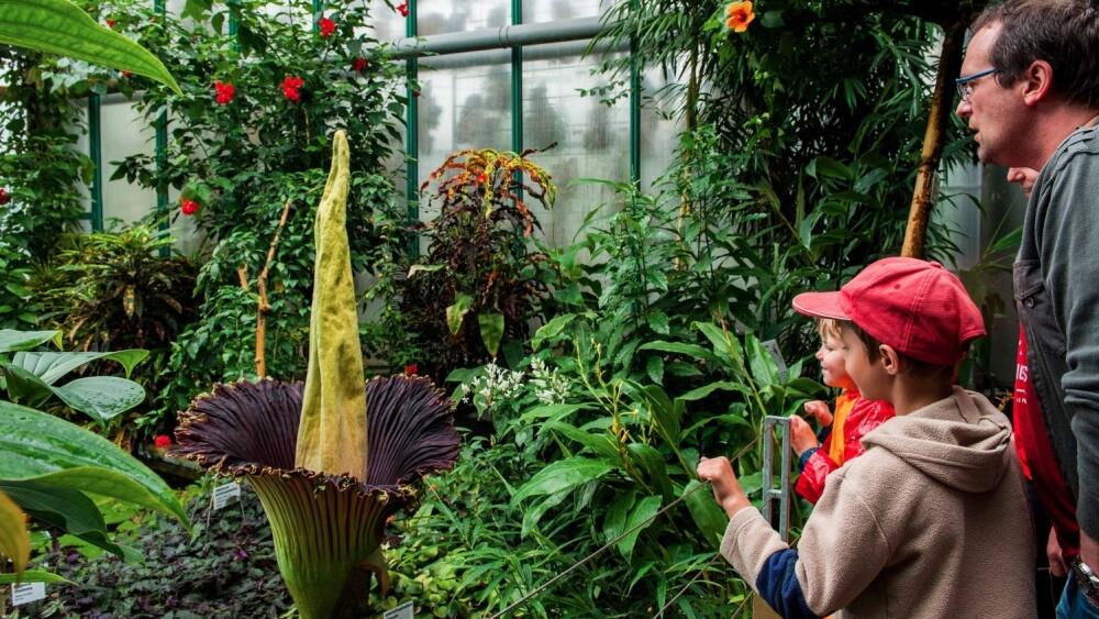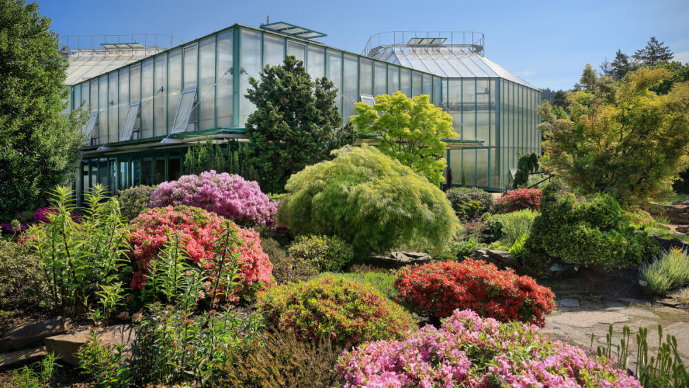 Botanická zahrada na ploše 1,8 hektaru původně sloužila hlavně k zásobování města zelení. První expoziční skleník nazvaný Palmehaus pro veřejnost otevřela v roce 1930 a bylo v něm 15 druhů palem a 360 druhů rostlin. Aktuálně je v ní devět skleníkových pavilonů z let 1995 až 2000, jejichž výstavba tehdy stála 155 milionů korun. Postavené byly podle návrhu architekta Pavla Vaněčka a svým uspořádáním připomínají seskupení rostlinných buněk. V roce 2014 je doplnil ještě pavilon leknínů za 11 milionů korun.