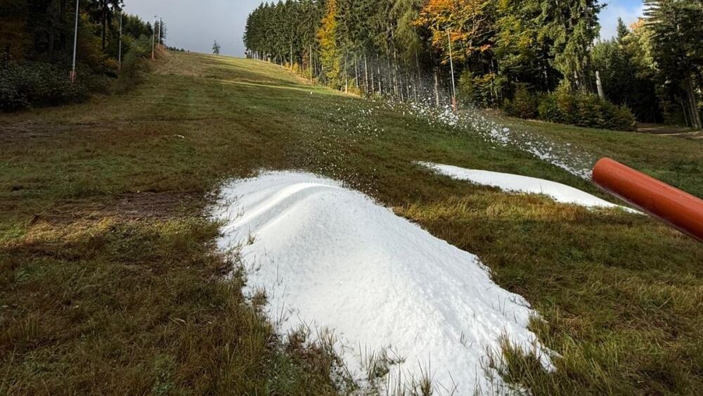 První technický sníh má na zimu připravený skiareál na Ještědu v Liberci. Systém, který umožňuje jeho výrobu i za teplot nad bodem mrazu, spustil provozovatel městského střediska v pondělí. Ředitel areálu Radek Chalupa dnes ČTK řekl, že sezonu chtějí zahájit za dva měsíce. Od středy začne technický sníh vyrábět i největší zimní středisko v Libereckém kraji, které je v krkonošské Rokytnici nad Jizerou.