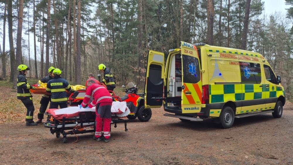 Hasiči pomáhali s šestikolkou zachránit zraněnou turistku v Besedických skalách
