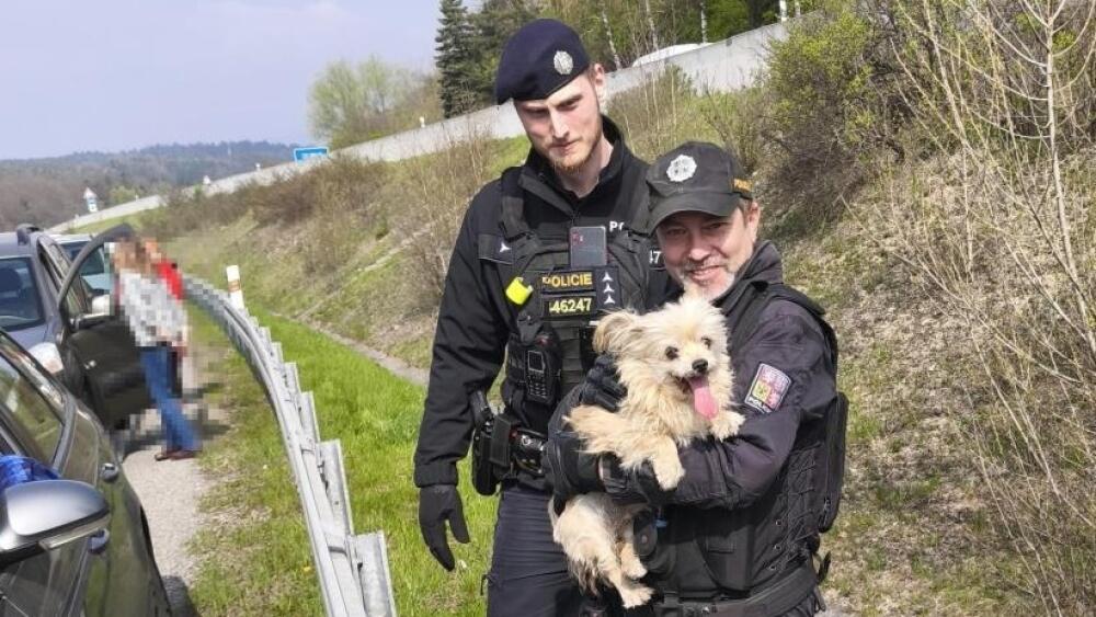 Policista vrátil do bezpečí fenku, která utekla z havarovaného auta. Vyděšeného psíka po rychlostce naháněli hasiči, policisté i řidiči