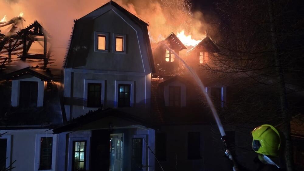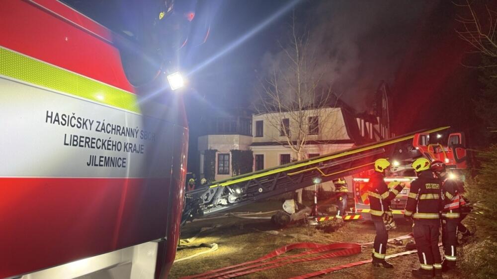Požár byl na operační středisko nahlášen v neděli krátce po 20:30. "Hořela střecha domu, při příjezdu první jednotky na místo se v objektu nikdo nenacházel, všichni obyvatelé opustili budovu v pořádku a bez zranění," řekla Masná. Zásah rozdělil velitel na dva úseky - jeden pro hašení, druhý pro nepřetržitou dodávku vody. Pro dopravu vody museli hasiči zřídit dvě čerpací stanoviště, jedno z nich u místního vleku, k hašení využili i výškovou techniku.