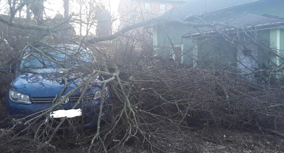 Silný vítr zaměstnává energetiky i hasiče. Strhl elektrické dráty a povalil sloup na auto