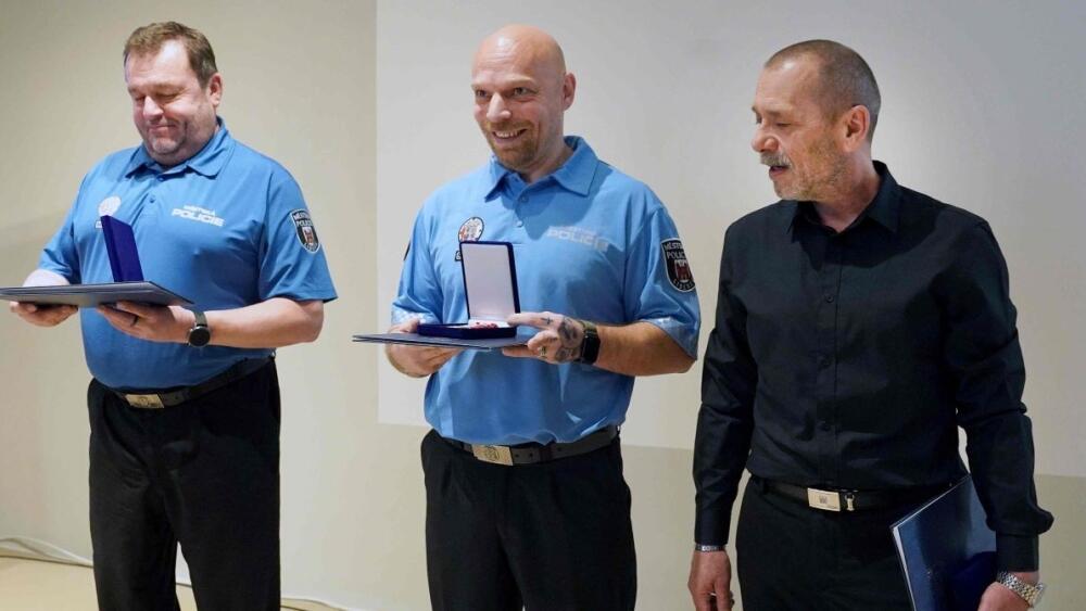 Závěr výroční porady patřil slavnostní části, při níž byly uděleny medaile za věrnost strážníkům za 10, 20 a 30 let služby a proběhlo jmenování do vyšší hodnosti vrchního praporčíka.