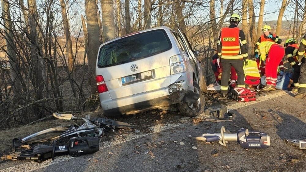 V Dolní Řasnici hasiči zasahují u DN 3 os. vozidel. Provedli opatření a zasypali sorbentem uniklé provozní kapaliny. Zraněným poskytli tepelný komfort.