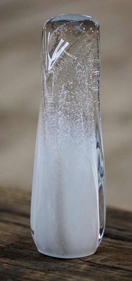 Vizuální charakter trofeje podtrhuje práce se světlem. Jemné bubliny ve skle a postupná změna transparentnosti vytvářejí dojem mrazivé struktury sněhu a ledu. Povrch doplňují pískované linie inspirované olympijskými piktogramy a bodovacími stopami na sněhu a ledu, které dávají objektu rytmus a hloubku.