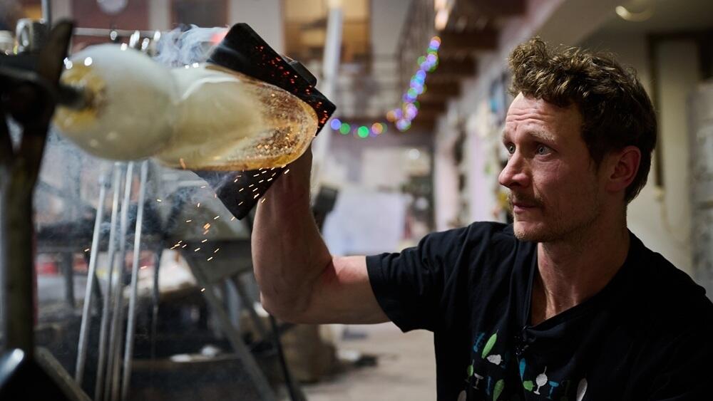 Každá trofej The Glide vzniká ručním foukáním bez použití formy. Sklo je tvarováno přímo v rukách zkušeného skláře, který musí po celou dobu práce udržet rovnováhu mezi stabilitou objektu a jeho charakteristickým zkroucením. Do horké skloviny se přidává soda a opálový prášek, díky nimž vzniká jemný přechod připomínající sníh a led. Následné pískování vytváří strukturovaný povrch, na němž se světlo přirozeně láme a pohybuje.