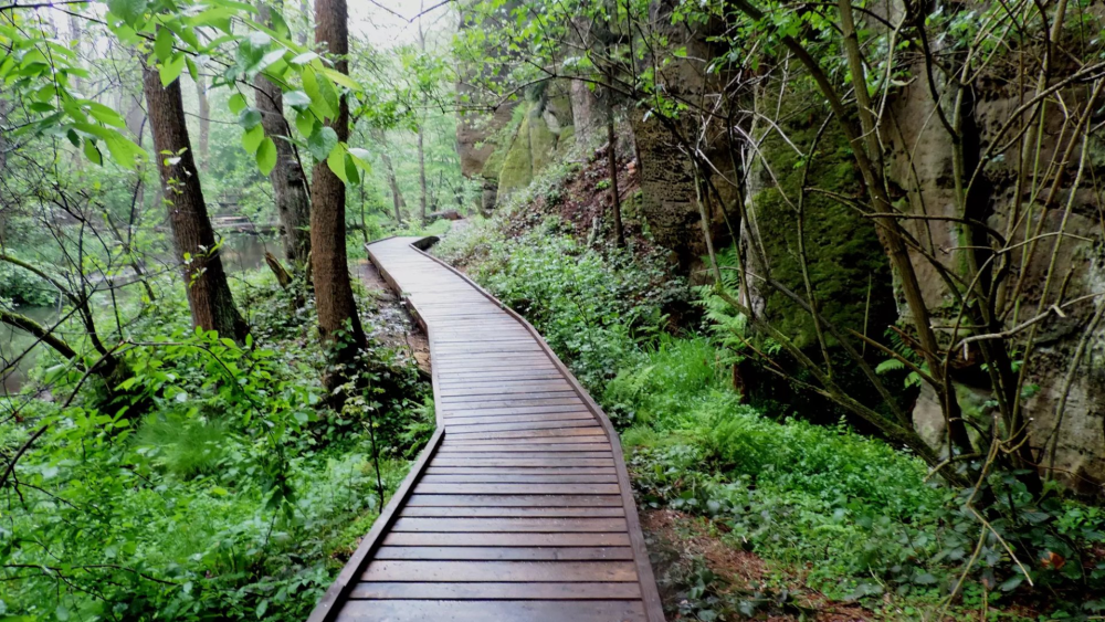 Do obce Zahrádky se můžete vypravit autobusem a za místním zámkem následujete červenou značku, která vás bude provázet po celou trasu. Na začátku výletu vás překvapí skalní obydlí, nebo stájí, do kterých lze volně vejít. Cesta pokračuje pod vlakový viadukt z roku 1898 – technickou památku, kde objevíte (na jaře) první trsy bledulí jarních, které vás od této chvíle budou provázet celou cestu. Lidovou architekturu jako z pohádky můžete obdivovat v malebné osadě Karba, na kterou navazuje bývalý mlýn. Cesta se svažuje k nivě Robečského potoka, a proto vede po dřevěném chodníčku. Z obou stran vás postupně obstoupí pískovcové stěny. Na cestě jsou i různé průlezy, skalní tunely a samozřejmě lávky.