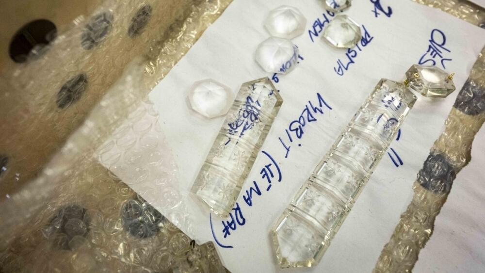 Některé části bylo nutné vyrobit znovu, rozbitých bylo několik ověsků a také několik zvonků a baldachýnů, které kryly spoje. Původní lustr byl vyrobený z olovnatého křišťálu, s tím už dnes Preciosa nepracuje. "Máme vlastní sklovinu, která už neobsahuje olovo, má ale stejné optické vlastnosti jako olovnatý křišťál, takže to bude stejné. Skleněný baldachýn je pískovaný, takže bude neprůhledný a skleněný zvoneček jsme schopní dobarvit do stáří toho skleněného dílu, aby vypadal jako že je 170 let starý," dodal Vávra.
