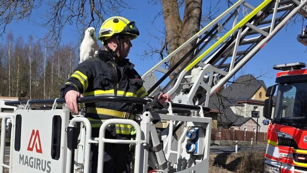 Papouška kakadu v hodnotě několika desítek tisíc korun ve čtvrtek 5. března 2026 kolem poledne zachraňovali jablonečtí profesionální hasiči v Dolním Kokoníně.