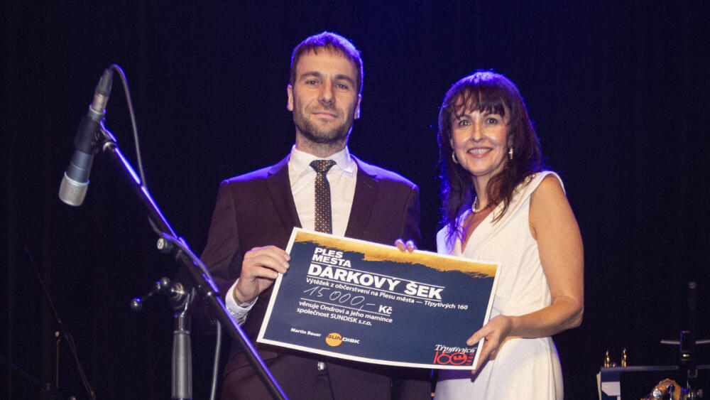 Součástí plesu byl také charitativní rozměr. „Spojili jsme se s Nadací Preciosa a rozhodli jsme se část z výtěžku plesu věnovat na jimi vyhlášenou sbírku. Město předalo 66 tis. korun a připojily se k nám i Víno Hruška a Sundisk, které zajišťovaly občerstvení,“ připomíná primátor Vele s tím, že k Ondrovi a jeho mamince poputuje prostřednictvím nadace celkem 87 100 korun. Šeky od Petra Bušanského z Víno Hruška a Martina Bauera ml. ze Sundisku převzala ředitelka Nadace Preciosa Andrea Kroupová.