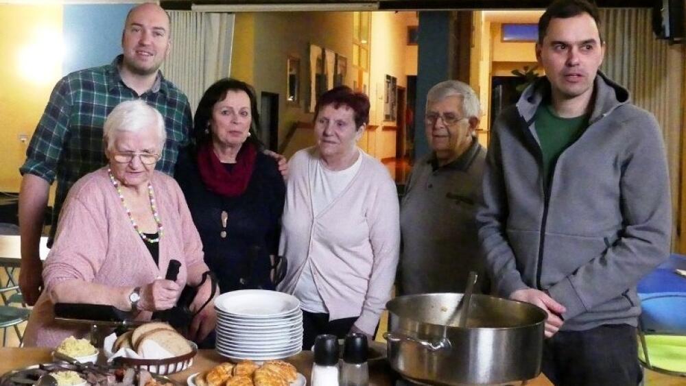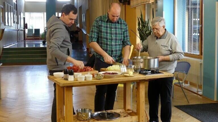 Za pomoci několika seniorek a seniorů připravovali televizní kuchaři menu v jídelně domova důchodců. Po zhruba čtyřech hodinách byly dobroty hotové a celé vaření vyvrcholilo servírováním a společnou večeří kuchařů s klienty.