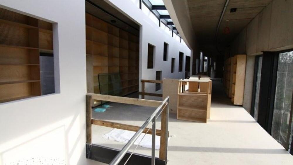 Interiér knihovny už zcela odráží její zaměření – všude, kam se podíváte, rostou regály. Všechny obklady a dlažby jsou hotové, dřevěné podlahy položené a výtah plně funkční. V kotelně se dokončuje instalace topné technologie včetně plynového kotle.