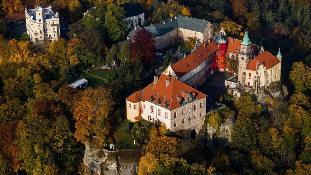 Cesta dále pokračuje po Zlaté stezce Českého ráje směrem k zámku Hrubá Skála. Po trase jsou výhledy na Hruboskalské skalní město, některé z vyhlídek s pomocí zvládnou i vozíčkáři, pro rodiny s kočárky je jich většina přístupná.