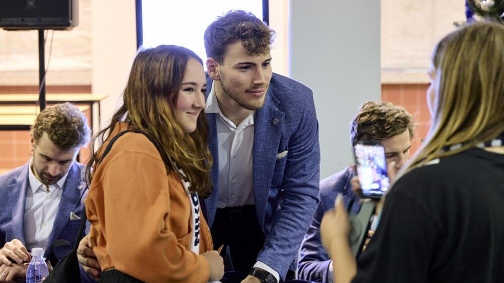 Tak, jako je tomu pokaždé v předvánočním čase, se i letos odehrála podpisová akce pro fanoušky. Po konci střetnutí s Dynamem, které liberečtí hráči ovládli v nervy drásajícím závěru 4:2, se kompletní tým spolu s trenéry shromáždil v ČS Klubu. Na místě už na ně čekala velmi početná skupina příznivců toužících po podpisech svých oblíbenců.