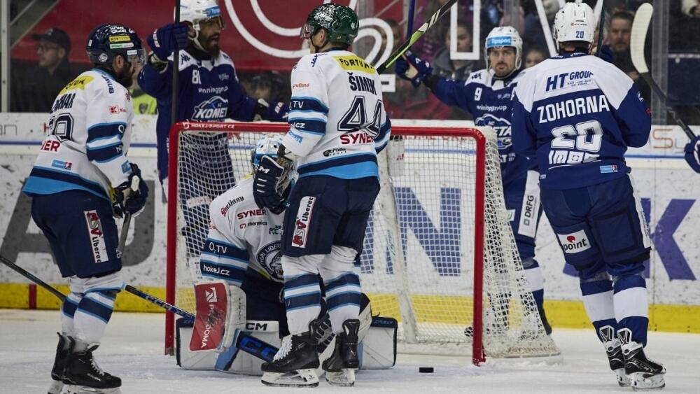 Branky a nahrávky: 14. Bulíř (Weatherby, Flynn), 18. Weatherby (T. Galvas, Bulíř), 25. J. Vlach (Weatherby), 43. Šimek (Jansa, Petrovský), 45. M. Ivan (J. Pérez) - 7. Flek (H. Zohorna), 40. Flek (Š. Stránský, Davidson), 43. K. Pospíšil (Kollár). Rozhodčí: Hribik, Zeliska - Zíka, Dědek. Vyloučení: 2:6. Využití: 3:2. Diváci: 6363.