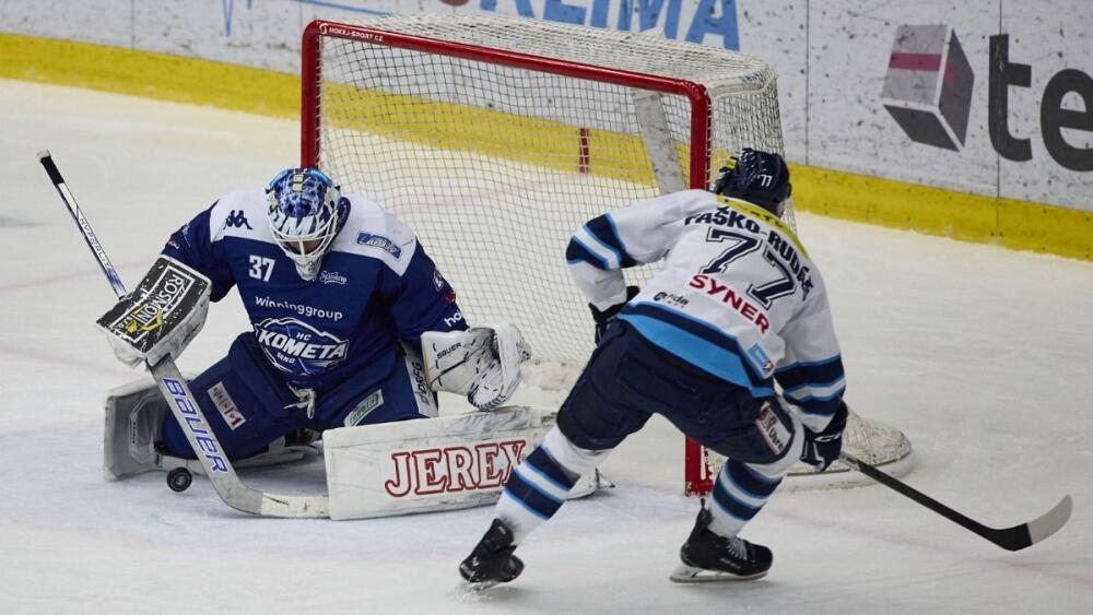 Liberecký brankář se vyznamenal i při další šanci Komety, tentokrát si na něho nepřišel Stránský. V závěru druhé dvacetiminutovky šel na trestnou lavici Faško-Rudáš a Brno toho využilo. Na konci kombinace s Davidsonem a Stránským byl Flek. Ještě před odchodem do kabin měl vyrovnaní na holi Rachůnek, Král ale vytáhnul výborný zákrok.