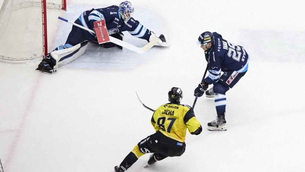 Skóre zápasu se poprvé měnilo až ve 44. minutě a do vedení se dostala hostující Verva. Po přihrávce Ondřeje Kašeho propálil Kváču rychlou střelou z otočky Hlava. Na rozdíl dvou branek mohl v následné přesilovce hostů zvýšit Koblasa, Kváčovi ale proti jeho dělovce pomohla horní tyč.