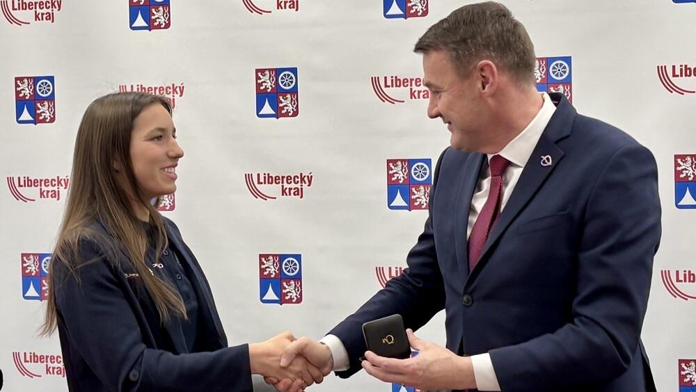 Dnes v Liberci dostala několik darů, mezi nimi byl i hejtmanský dukát. "Párkrát za rok udělujeme hejtmanský dukát za výjimečné, většinou celoživotní počiny. Ale tento úspěch je tak výjimečný, že jsme se rozhodli s kolegy v radě kraje udělat takovou trochu výjimku," řekl hejtman Martin Půta (Starostové pro Liberecký kraj).