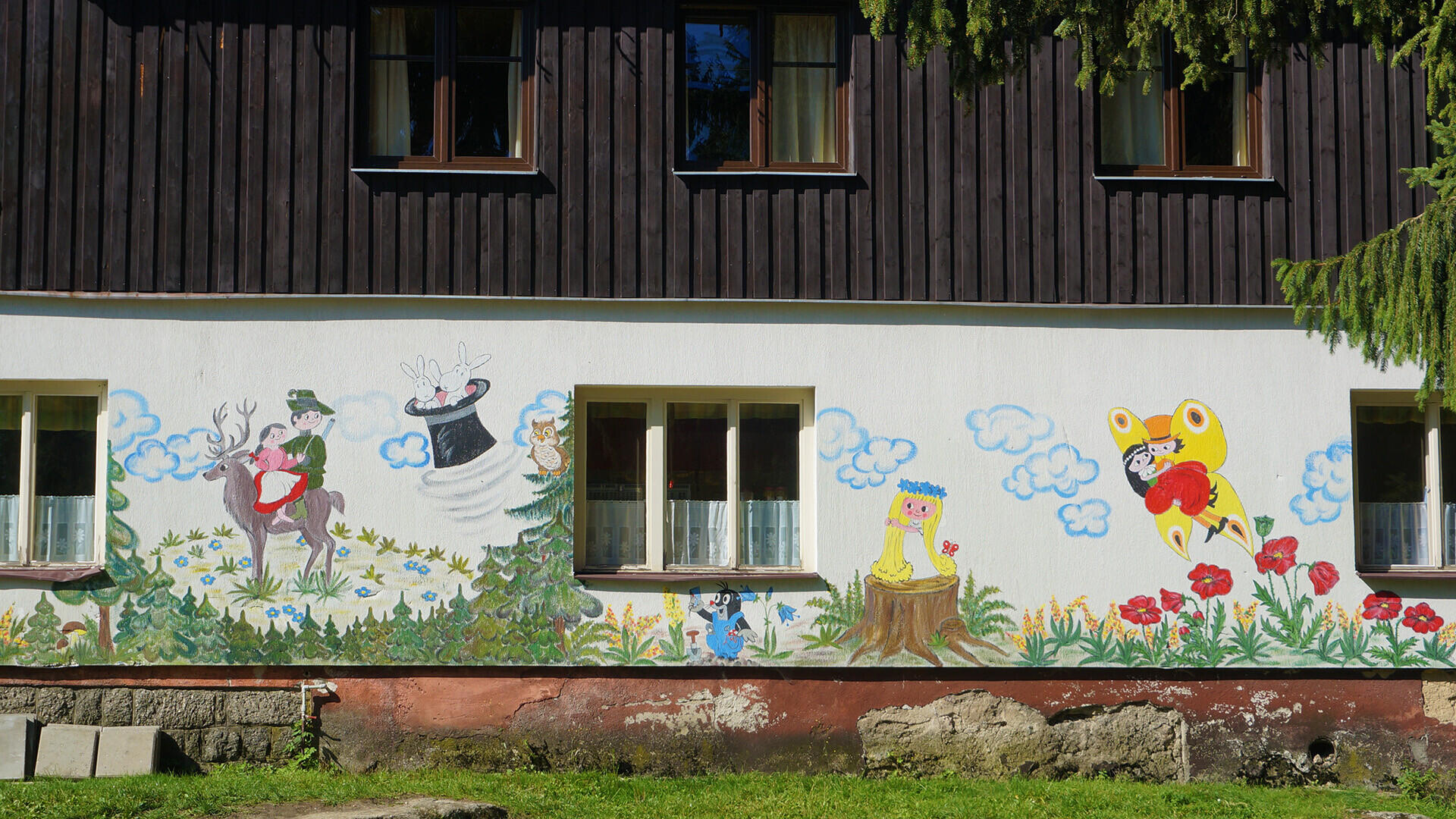 Plot farmy je obrazovou encyklopedií mushingu, cesta podél něj je vysekaná, takže si můžete jednotlivé panely prohlédnout zblízka a třeba vás zláká široká nabídka Janiných zážitkových akcí na objednávku.